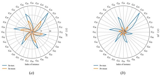 To estimate the effect of and on wind load, we randomly generate 36 instances for different speeds and average wind speeds. The values of and are less than 200 km/h and 30 m/s in the actual running conditions of CRH2 high-speed trains on China’s Qinghai-Tibet Railway. Therefore, the values of are set to 50, 80, 110, 140, 170, 200, and the values of are set to 5, 10, 15, 20, 25, 30, respectively, in our simulation experiment.