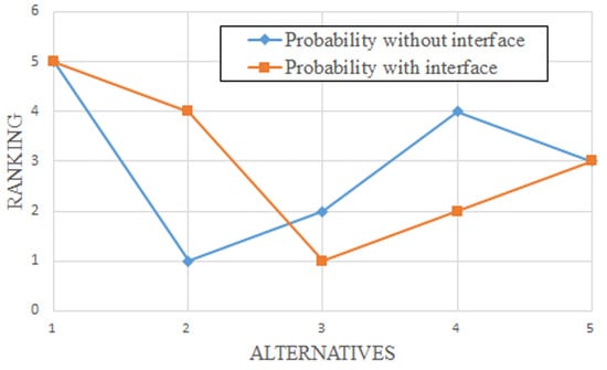 Table 10 displays the ratings on the two sites, as well as the final ranking indices and orders obtained using various techniques. In Table 10, means ranking values of of the corresponding method. In Table 10, the ranking of alternatives according to the TODIM-PROMETHEE II [26] method is , i.e., the optimal option is . When the proposed model is applied without considering the interface effect, the optimal option is also . This suggests that the optimal option of the proposed approach align with the TODIM-PROMETHEE II [26] method when the impact of decision makers is disregarded, thereby validating the robustness of the suggested model. However, when evaluating the quantum interference among decision makers, the outcomes of this model suggest that is the optimal strategy. This inconsistency arises from the conventional framework’s exclusion of the interference effect among decision makers, which leads to subjective biases during the evaluation of alternatives. As a result, the outcomes of this model better align with real-world complexities.