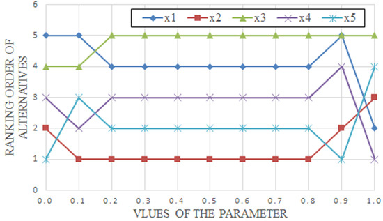 One parameter is established for experts in relation to the psychological behaviors that are taken into consideration and the interference effects, based on the procedures of the generalized LZN TODIM-PROMETHEE II technique and the QDT. We may investigate the impact of the parameter on the final assessment findings and ranking orders by varying the associated parameters, as demonstrated in the sensitivity analysis section. Based on the above explanation, the suggested paradigm offers the following three key benefits: