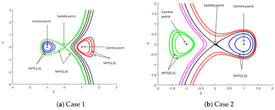 In these instances, the production of a family of nonlinear periodic trajectories is needed, , and homoclinic trajectories, . There are and parameters included that are used to achieve closed-form solution for (1).