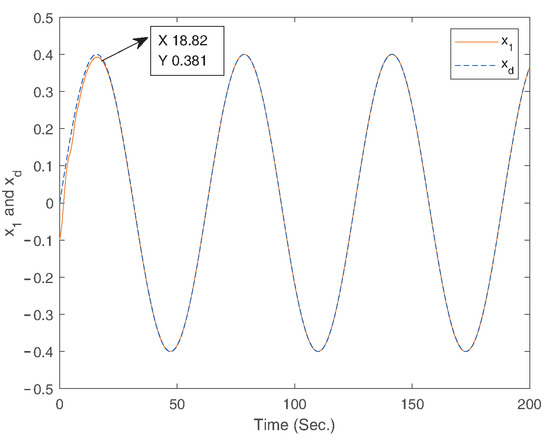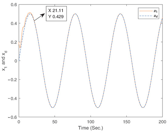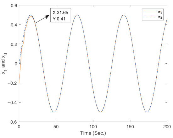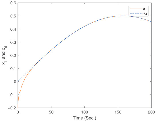 The initial values of the states are and . In this simulation, the reference signal is . The other parameters are designed as , , , , , , , , , , , , , , , , and .