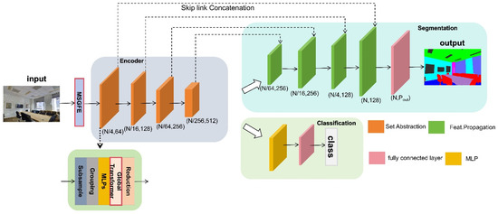 The rapid development of 3D scanning technology has enabled the acquisition of 3D representations of real-world objects with unparalleled accuracy and speed. Rich in geometric and topological information, point clouds are extensively utilized across various fields, such as urban planning [1], building modeling [2], robot navigation [3], indoor reconstruction [4], and autonomous driving [5,6]. The classification and segmentation of point clouds represents a significant method for the effective comprehension of such data and has been the subject of considerable interest amongst researchers, offering considerable research value and a broad range of potential applications.