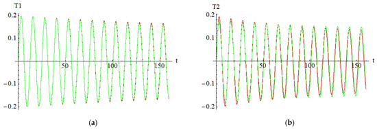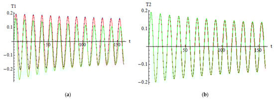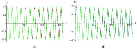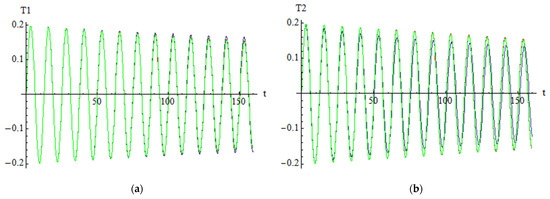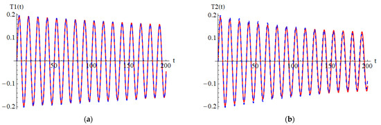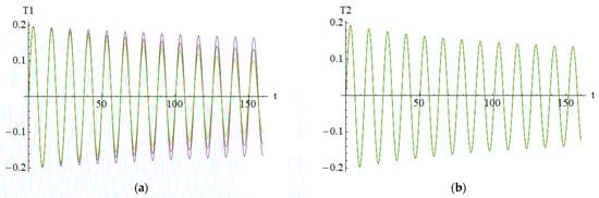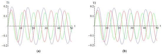 The solutions for the first approximations T11(t) and T21(t) can be obtained from Equations (68), (72), (73), (81), and (82):