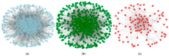 The crime graphs that were constructed for each dataset: (a) 1000 reports, (b) 500 reports, and (c) 100 reports.