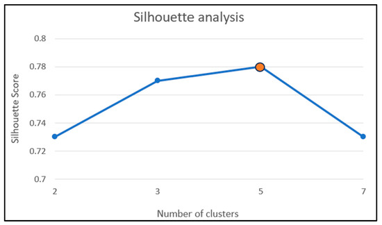 - The Silhouette Score (S) is a widely used metric to validate the performance of clustering algorithms. It measures the quality of a clustering result by considering both the compactness of each cluster and the separation between different clusters. Whereas compactness indicates how closely related the objects in a cluster are to one another, separation indicates how distinct or well-separated a cluster is from other clusters. The score ranges from −1 to 1, where a higher value indicates a better clustering solution [25].