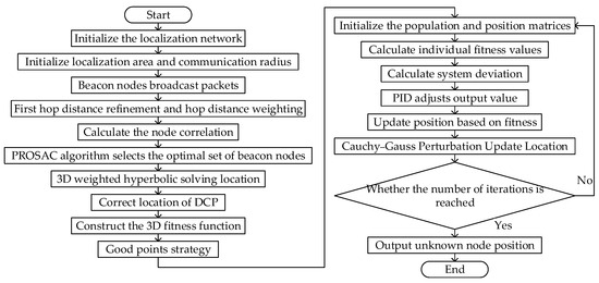 - The system deviation is calculated and iteratively updated using the PID regulation process. The Cauchy–Gaussian perturbation strategy is incorporated in the later stages of the algorithm to output the optimal node position coordinates.