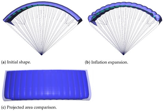 - Fogell, N.A.; Sherwin, S.; Cotter, C.J.; Iannucci, L.; Palacios, R.; Pope, D.J. Fluid-structure interaction simulation of the inflated shape of ram-air parachutes. In Proceedings of the AIAA Aerodynamic Decelerator Systems (ADS) Conference, Daytona Beach, FL. USA, 25–28 March 2013; p. 1326. [Google Scholar]