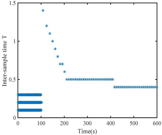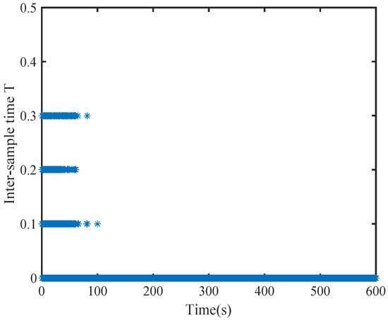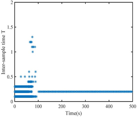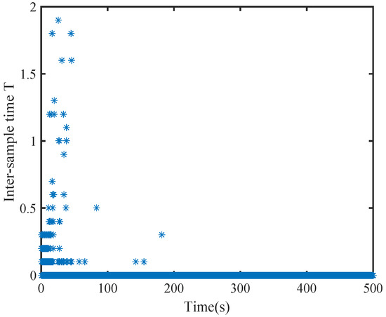 In Figure 24 and Figure 27, the horizontal axis of symbol “*” represents the triggering instant, and the vertical axis of symbol “*” denotes the difference between the current triggering instant and the previous triggering instant.