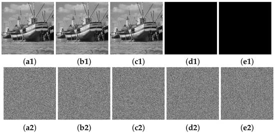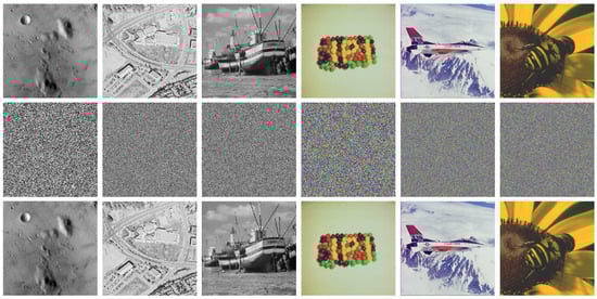 This section will demonstrate and analyze the performance of MIEA-PRHM in terms of security and efficiency. These analyses cover ten aspects, including visual assessment, key space, key sensitivity, plaintext sensitivity, and so on. The employed test images are sourced from common benchmark databases, which are USC-SIPI (http://sipi.usc.edu/database/, accessed on 1 November 2024) and CVG-UGR (https://ccia.ugr.es/cvg/dbimagenes/index.php, accessed on 1 November 2024). The hardware platform is a PC with an Intel CPU E3-1231 v3 and 8 GB of RAM. MATLAB R2017a serves as the simulation software. Unless specified, randomly generated secret keys are adopted to ensure the generality and objectivity of our performance analyses.