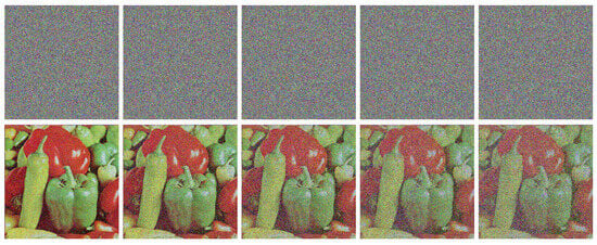 To emulate scenarios where ciphertext pixels are subjected to noise corruption, we introduce various intensities of salt and pepper noise (SPN) into an encrypted image of the test image 4.2.07 as depicted in the top row of Figure 12. Subsequently, we decrypt these corrupt images. The bottom row of Figure 12 displays the resultant decrypted images. Upon visual inspection, it becomes evident that, at relatively low noise intensities, the decrypted images exhibit no significant visual divergence from the original image. As the noise intensity escalates, the decrypted images progressively degrade in sharpness. Even so, when the noise intensity attains a magnitude as high as 0.05, a preponderance of meaningful visual information remains discernible within the decrypted images. This observation underscores the commendable robustness of the MIEA-PRHM in defending against noise attacks.