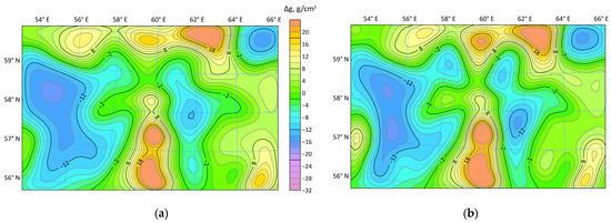 - Martyshko, P.S.; Ladovskiy, I.V.; Tsidaev, A.G. Constructional of Regional Geophysical Models Based on the Joint Interpretation of Gravity and Seismic Data. Izv. Phys. Solid Earth 2010, 46, 931–942. [Google Scholar] [CrossRef]