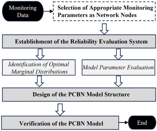 This paper utilizes the GCBN model to conduct a reliability analysis of deep foundation pit support structures, providing real-time and effective assessments of their reliability. The GCBN model integrates Bayesian networks with pair-copula theory. The process of constructing and analyzing the GCBN model in this study can be divided into three steps: Step 1, design of the GCBN model; Step 2, model verification; Step 3, reliability analysis based on the model. The specific process is shown in Figure 1.