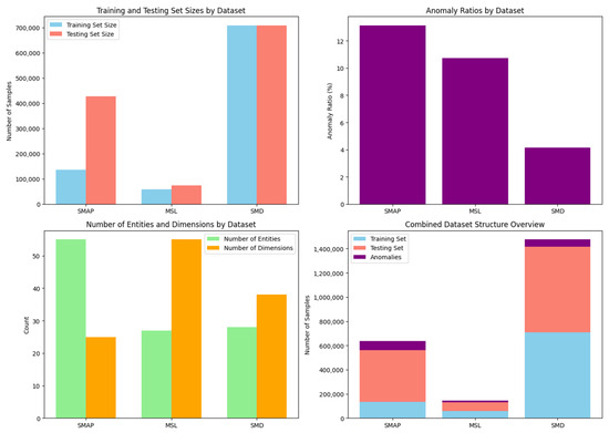 Figure 6 visualizes the detailed structure of each dataset. The MSL and SMAP datasets have smaller training sets compared to their test sets, while the SMD dataset consists of an equal number of samples in the training and test sets. Additionally, the SMD dataset has relatively lower anomaly ratios compared to its overall data size (Table 1).