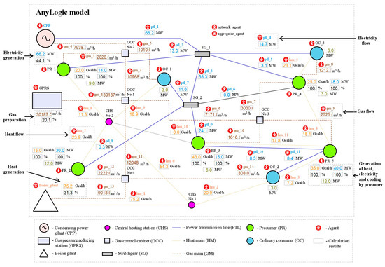 We choose the multi-agent approach to formalize complex interaction within energy systems, which include a number of entities driven by their own goals and interests as part of the energy supply process. The multi-agent approach is a branch of artificial intelligence that uses systems consisting of many interacting agents to solve complex problems. The approach has been successfully applied by researchers around the world to study engineering systems and search for solutions in systems with a large number of individual entities acting on their own [14,15]. It enables proper and detailed studies of the mechanisms of interaction and coordination of individual entities in the IES [16].