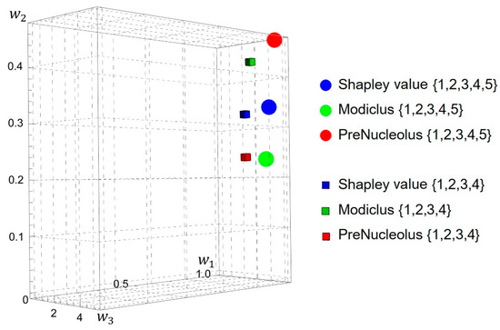 - Schmeidler, D. The Nucleolus of a Characteristic Function Game. SIAM J. Appl. Math. 1969, 17, 1163–1170. [Google Scholar] [CrossRef]