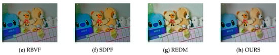 where is the scaled Lagrange multiplier, and . Secondly, it is observed that the v-subproblem in (2) is a proximity operator at the point . Inspired by the work in [28], it can be seen as a denoising step. For example, if we select , the minimization problem corresponds to the well-known ROF denoising model. Based on the understanding, ref. [28] presented a variant form of the above scheme by suggesting that one does not need to specify . Instead, it can be replaced by an off-the-shelf image denoising algorithm, i.e., , to form a denoiser