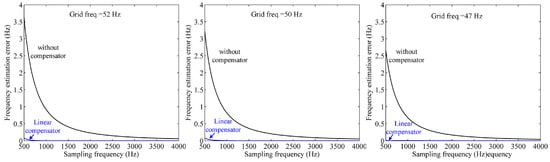 Figure 2 shows the schematic of the linear compensator described in (14), and Figure 3 evaluates its performance. As it can be observed, the linear compensator can significantly reduce the frequency estimation error at low sampling frequencies.