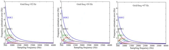 Comparing (25) with (8) indicates that the BDF2 increases the frequency estimation error. Therefore, it should not be used. However, the other BDFs, particularly BDF6, reduce the frequency estimation error. This fact can be clearly observed in Figure 4.