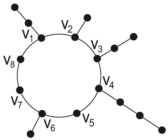 For , , we denote by an vertex unicyclic graph consisting of a cycle , and paths , , such that is an end vertex of , . The vertices are positioned clockwise on , see Figure 2. Consequently, .