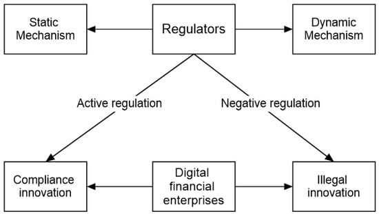 Digital finance is a combination of internet information technology and traditional financial services. The emergence of digital finance is conducive to the development of social technology and industry [1,2]. However, when looking at the reality, not all digital financial innovations are compliant, and innovations using illegal digital technologies happen from time to time. On the one hand, financial innovation has given rise to accomplishments such as digital currency, technology finance, and big data risk control, thereby enhancing the operational efficiency of the financial industry and fostering the growth and prosperity of the financial market. Conversely, there have also emerged instances of financial turmoil like P2P online lending, shadow banking, and illegal fundraising that have resulted in frequent financial risks and widespread incidents, significantly impacting financial security and social order. The complexity and multifunctionality inherent in regulating financial innovation itself along with the imperfections and delays within the existing regulatory system may be identified as pivotal factors contributing to this issue.