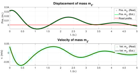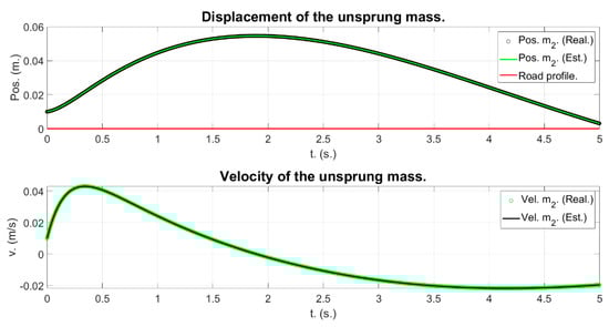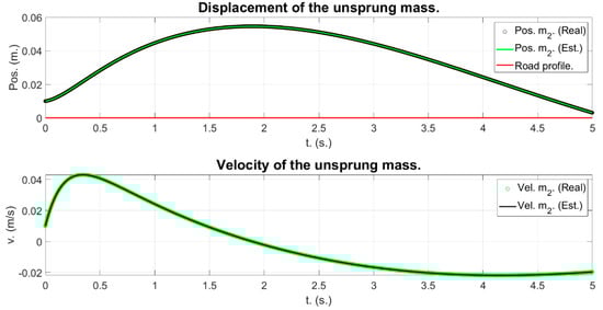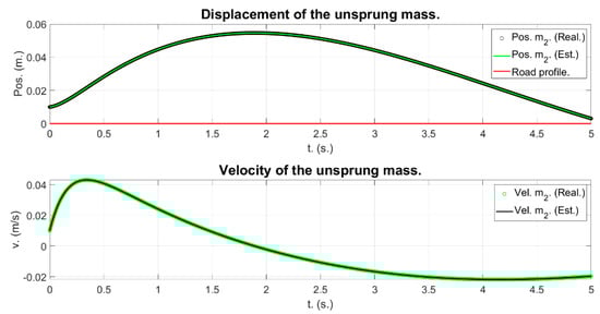 Then, we present the optimization and parameter identification tool (Figures 4–6), with an example of a two-DOF model, when the vehicle starts from a position of equilibrium (Figures 7 and 8), when passing over a curb (Figures 9–11), and when passing over a speed bump (Figures 12–14). The purpose of these examples is to ascertain if the tool has been correctly implemented by comparing these results with the expected behavior.