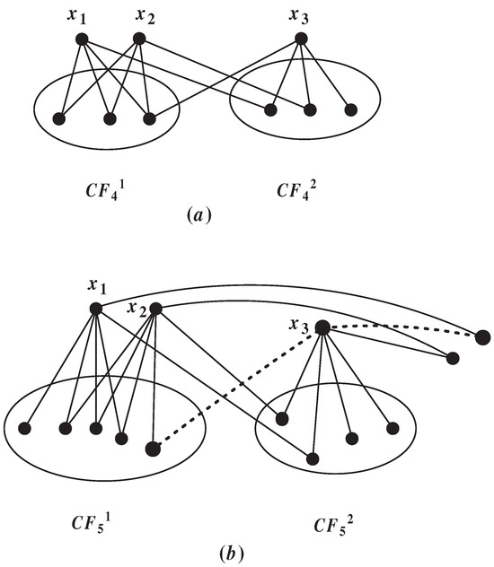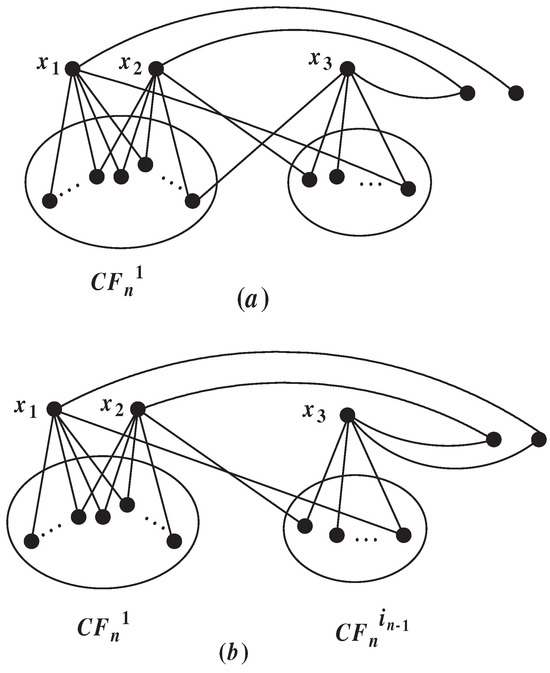 Similarly, we do not think about the situation being connected, so we let be disconnected. Let for with , where . If , then and is connected. By Proposition 2, we can ascertain that is connected. So we assume . Since , we have , , , , , . Firstly, we prove the following claim is correct. □