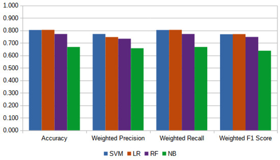 Belonging to the category of combined ML approaches, there is the work of Neagu et al. [32], whose general purpose is building a multinomial classifier (negative/positive/neutral) to be used for inferring the polarity of Romanian tweets in a video-surveillance context. By using both classical (Bernoulli NB, SVM, RF, LR) and deep learning approaches (deep neural network (DNN), CNN, LSTM), together with different types of encodings (TF-IDF/doc2vec for classical ML and DNN, word2vec for CNN and LSTM), they argue that, by adapting the NLP pipeline to the specificity of the data, good results can be achieved even in the absence of a comprehensive Romanian dataset (their dataset consists of 15,000 tweets, translated from English). The best obtained accuracy (78%) has resulted from using Bernoulli NB with TF-IDF encoding, while the state-of-the-art value (81%) is provided by the multi-lingual BERT, with a training time penalty though. Istrati and Ciobotaru [33] report on creating a framework aimed at brands’ monitoring and evaluation, based on the analysis of Romanian tweets, that includes an SA binomial classifier trained and tested on a corpus labeled by the authors. The data are preprocessed using four proposed pipelines, the resulting sets being used to train and test various ML models, both classical and modern. The best accuracy and F1-scores are achieved by using a neural network with fastText [25], that being the model chosen for the framework classifier. Coita et al. [34] use SA in order to assess the attitude of Romanian taxpayers towards the fiscal system. In this respect, they try to predict the polarity of each of the answers provided by around 700 respondents to a 3-item questionnaire, using a BERT model pretrained and tested on a corpus of around 38,000 movie and product reviews in Romanian. BERT is chosen, as it provides maximum accuracy (98%) among several compared models, namely itself, recurrent neural network (RNN), and three classical ML approaches: LR, DT, and SVM.