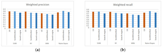 Within the first category, the work of Burlăcioiu et al. [26] aims to capture users’ perceptions with respect to telecommunications and energy services, by analyzing 50,000 scraped reviews of mobile applications, offered by Romanian providers in these fields. They compare the results of five well-known SA models (logistic regression (LR), decision trees (DT), k-nearest neighbors (kNN), support vector machines (SVM), and naïve Bayes (NB)) on a balanced, automatically labeled version of the dataset, using term frequency–inverse document frequency (TF-IDF) encoding [27]. The best accuracy is obtained by employing DT and SVM (79.5% on average for the two models), with the former achieving better time performance. Russu et al. [28] provide a solution for sentiment analysis at the document and aspect levels, considering unstructured documents written in Romanian. They employ two different methods for sentiment polarity classification: one using SentiWordnet [29] as a lexical resource, and one based on the use of the Bing search engine. The experiments are conducted on a perfectly balanced corpus, consisting of 1000 movie reviews written in Romanian (500 positive and 500 negative), manually extracted from several blogs and websites. The documents have been manually labeled, based on the individual scores assigned by the user (in the range [1–10]). To identify document-level polarity, the authors experiment with random forest (RF), kNN, NB, and SVM, the maximum precision values obtained being 81.8% (using SentiWordnet) and 79.2% (using Bing queries).