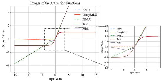 However, the turning point was when we employed Mish as the AF for improved D and obtained an experimental result of 94.67 that was superior to LeakyReLU and PReLU. At this point, we turned to the idea that activated negative-axis information does not inevitably harm the FD results, e.g., Mish still activated the negative-axis information, and it obtained better results than the last two AFs. It is well known that Mish’s activation expression on the negative axis is smoother rather than linear, and perhaps this is its advantage.