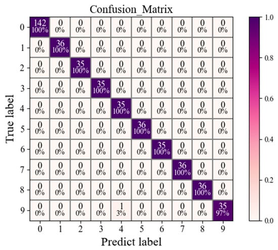 Figure 10 clearly reveals the abundance of normal samples. Corresponding to the previous table, one actual fault 9 sample is erroneously diagnosed as fault 4. This observation indicates that while Focal Loss helps alleviate the impact of class imbalance, it is not flawless in its performance in this experiment.