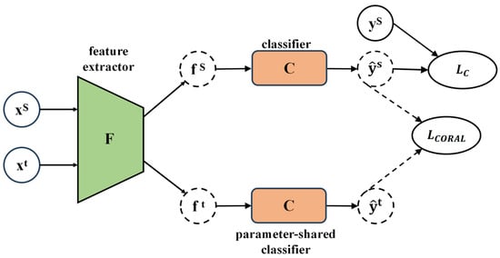 14] et al. relied on MMD and CORAL to transfer high-level representations of different domains to the same region in the subspace to design new paradigm metrics and constructed parameter-sharing CNNs to optimize the difference in distributions obtained by the metrics to cope with the problem of bearing data domain shift in different machines FD. The limitation of these methods, however, is that they require human design or improvement in the measure of distribution distance, but human design can bias the effect of DA between data. In fact, when the distribution characteristics in DA cannot be calculated or are difficult to obtain, model networks that rely on data interpretation cannot be led to learn [