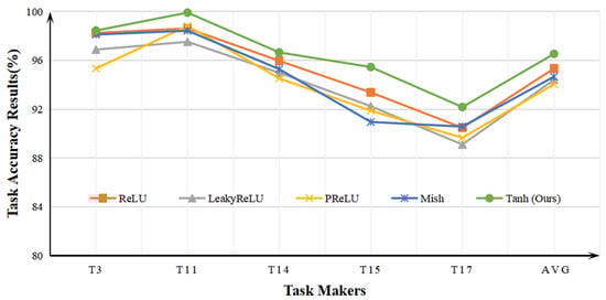 Figure 16. Nowadays, in prevalent neural networks in which ReLU will be used as the default AF, it is necessary to consider ReLU as a baseline for the discussion. Remarkably, in these five specific tasks, CDAN obtained an AVG result of 93.92 (see