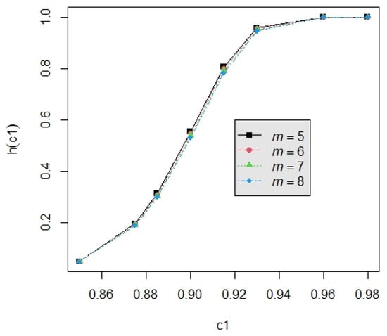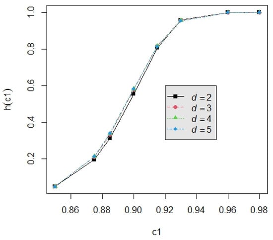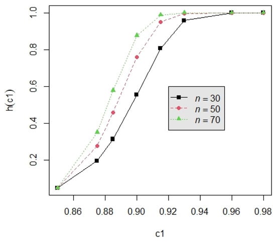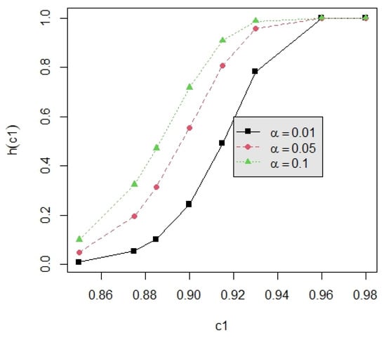 For the assessment of whether the overall lifetime performance index exceeds the desired target value c0, we develop a statistical testing procedure in this section. The null and alternative hypotheses are (d production lines are not capable) vs. (d production lines are capable). Under the condition of , if the overall lifetime performance index , we can obtain the condition of , where is the target value for each lifetime performance index according to . The above statistical hypothesis for testing the overall lifetime performance index can be equivalently set up as follows.