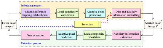 The proposed CRM-based RDH framework is composed of two main components: an embedding process and an extraction process. Figure 2 furnishes an illustrative depiction of the CRM-based RDH framework.