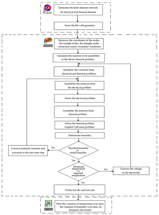 The qualitative analysis of the quasi-stationary electromagnetic field used in radio frequency (RF) must take account of variations in dielectric parameters. Therefore, from among the sources considered, a selection was performed, based on the identification of [5,10,14,15,16,17,18,19,20,21,22]. Often, the finite element method is used as a numerical calculation method in order to determine the field in different applications. This method was devised long before the use of computers for engineering design. In 1968, an application of this method, aimed at solving an electrical problem, was mentioned in a paper. In the same year, in the field of civil engineering, the first book with the finite element method as its main subject was also printed. Since the 1970s, this method has been very well studied from the mathematical point of view and its implementation on the computer has been examined. Nowadays, there are many such specialised program packages designed for solving various problems [23,24,25,26,27].