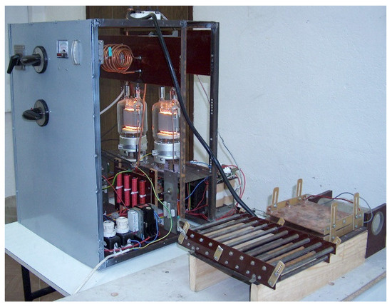 - Leuca, T.; Spoială, D.S. Roman, Electrotermal installation for processing of the high-frequency electromagnetic field. In Application Consisting of the Wood-Dust Drying in Radio Frequency, Annals of University of Oradea, Romania; Electrotechnical Fascicola; University of Oradea: Oradea, Romania, 2002. [Google Scholar]