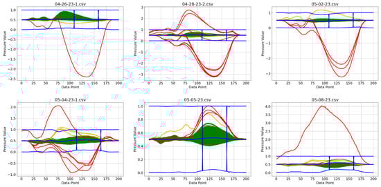 Our analysis of fifteen datasets displays six cases of , as can be seen in Figure 8. A consistent trend was observed, with these s (orange color) often found in the intermediate range between normal data (green color) and synthetic abnormal data (blue color). The presence of this overlap suggests a potential ambiguity in the model’s perception, which could be attributed to the inadequate differentiation between synthetic and authentic data. To enhance the accuracy of our AI-based fault detection system in future research, the following key points can be considered: First, it is important to meticulously refine the RSDS process, especially in the context of its potential expansion or adaptation for broader manufacturing settings. Second, exploring more advanced methodologies may mitigate the occurrence of . A reassessment of our methodologies for extracting features could potentially offer a clearer distinction between different categories of data. In this case, we can also compare our model’s performance with CFM. Lastly, the integration of continual learning mechanisms has the potential to enhance the adaptability of the model and improve the realism of our synthetic data generation.