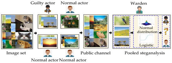 Pooled steganalysis (Warden) aims to discover the guilty actors among multiple normal actors. As stated in Section 2.2, every actor (normal or guilty) will transmit large groups of cover objects over a public channel. To provide a better statistical description of actors, we assume that all cover object sets are sampled from the same cover source. Obviously, the selected cover image set can be seen as a subset of the original distribution of the cover source, which motivates us to design the model-based pooled steganalysis and the detailed scheme is provided in Section 3.