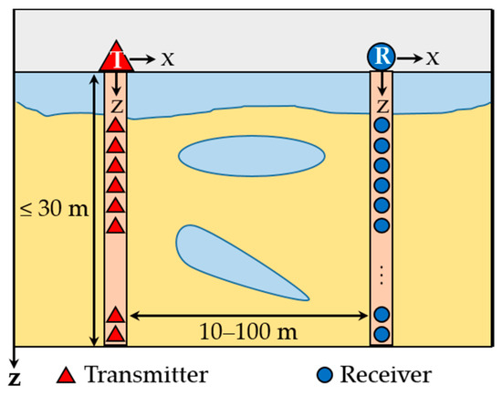 - Swidinsky, A.; Weiss, C.J. On coincident loop transient electromagnetic induction logging. Geophys 2017, 82, E211–E220. [Google Scholar] [CrossRef]