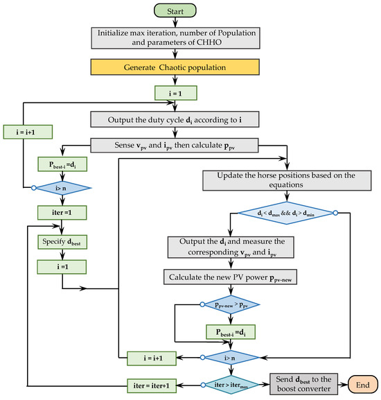 2.4. CHHO-Based MPPT Control of the Boost DC–DC Converter