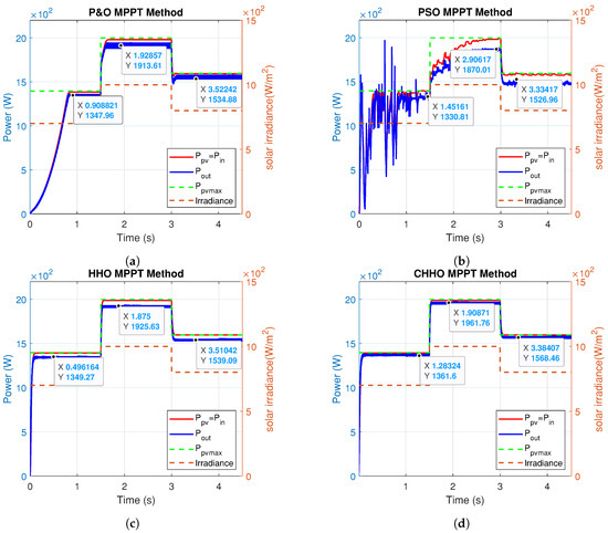 - To carry out an enriching comparative analysis study of the CHHO performance and those of Perturb and Observe (P&O), Particle Swarm optimizer (PSO), and original HHO when implemented, taking into account the same assumptions.