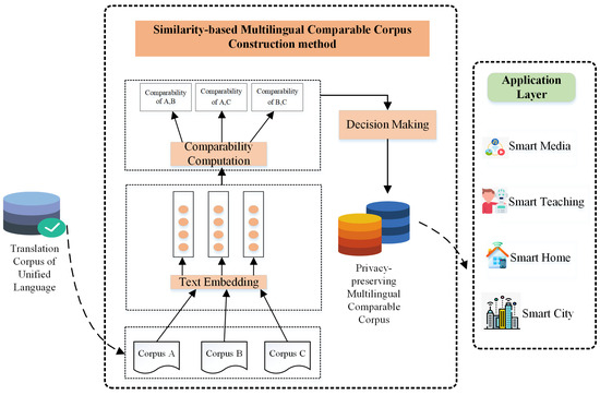 - We propose a similarity-based method for constructing a privacy-preserving multilingual comparable corpus in IoT involving three or more languages. Currently, natural language processing tasks often heavily rely on large-scale parallel corpora, while resources for multilingual parallel corpora are limited. A comparable corpus serves as a rich resource that offers indispensable supplements to parallel corpus. Previous research has predominantly focused on constructing bilingual comparable corpora, with little attention given to constructing comparable corpora involving three or more languages, particularly for low-resource languages. We introduce a capable approach to address this challenge of constructing a multilingual comparable corpus.