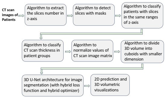 - A prediction pipeline is proposed, utilizing a 3D U-Net architecture for image segmentations in 3D CT scan images. The developed pipeline consists of a series of algorithms for data pre-processing to generalize and normalize the CT scan data. A 3D U-Net architecture is customized to cater to the requirements of accurate segmentations and volumetric predictions of breast tumors. The designed pipeline can become a complementary supporting tool for radiologists to increase the productivity and efficiency of their jobs.
