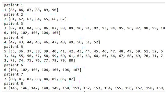 - The List with all indexes ≤ 96: All indexes of the slices with masks are lesser than or equal to 96. As shown in Figure 6, most patients, e.g., patients 1, 2, 4, 5, and 7, satisfy this condition.