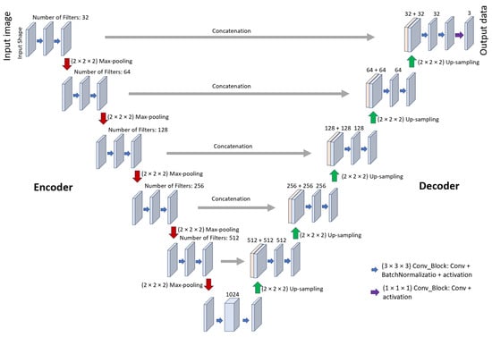 - Ronneberger, O.; Fischer, P.; Brox, T. U-Net: Convolutional Networks for Biomedical Image Segmentation. In Medical Image Computing and Computer-Assisted Intervention—MICCAI 2015. MICCAI 2015; Navab, N., Hornegger, J., Wells, W., Frangi, A., Eds.; Lecture Notes in Computer Science; Springer: Cham, Switzerland, 2015; Volume 9351. [Google Scholar] [CrossRef]