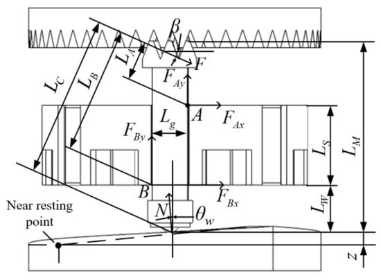 In Equation (20), is the width of the oscillating tooth rod; is the elastic modulus of the oscillating tooth material; and is the contact area between the oscillating tooth rod and the groove pulley.
