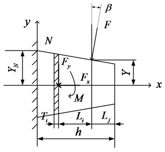 The oscillating gear teeth can be simplified to a tapered beam on the flexible body of the oscillating teeth, and the load is equivalent to the right end of the microelement, which is decomposed into force along the x-axis direction, force along the y-axis direction, and the equivalent bending generated by , as shown in Figure 4.