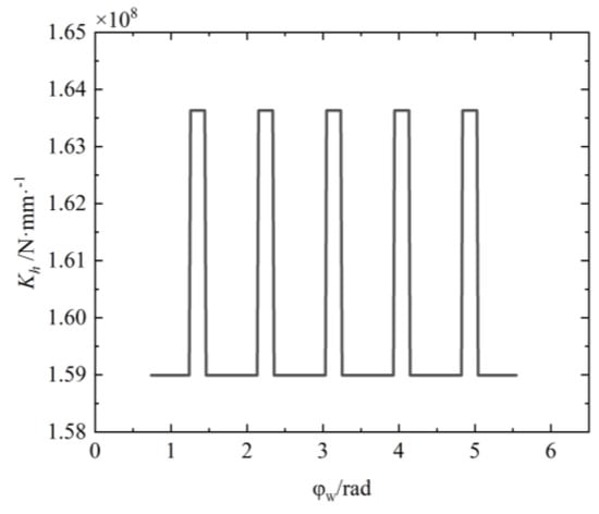 In summary, the meshing stiffness of a single pair of gears at the load point can be obtained using Equation (17).