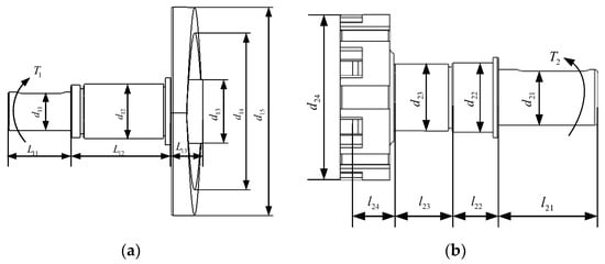 The two shaft structures are both stepped shafts, and the torque provided by the motor or the load is received during the movement. The segmentation and torque are shown in Figure 12a,b.