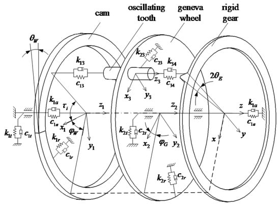In the equation, and represent the mesh stiffness of the driving and driven gears, respectively. They are functions of the meshing point position, specifically the contact point between the oscillating teeth and the circular spline teeth.